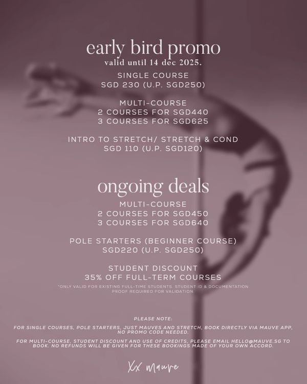 Write to hello@mauve.sg with your valid student ID and proof of full-time study status and period.